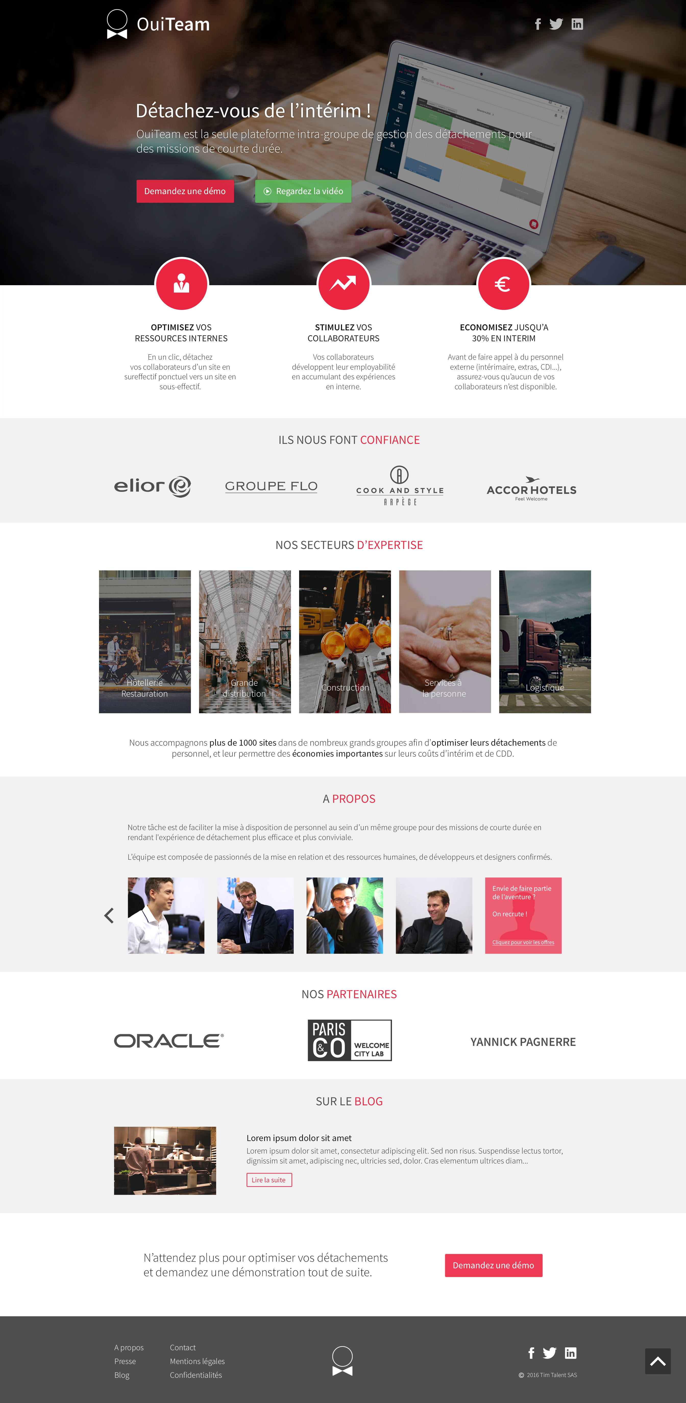 On the design side, I focused on the homepage and on the blog. I designed two versions of the homepage. The first one included a demo button and the three main benefits of our solution in the hero section and then our clients and activity sectors. The second one, much longer, included our main features. In the end, the second version was chosen and developed. It allowed in a single glance to have access to everything we offered, our benefits, features and did not require the development of a features page.